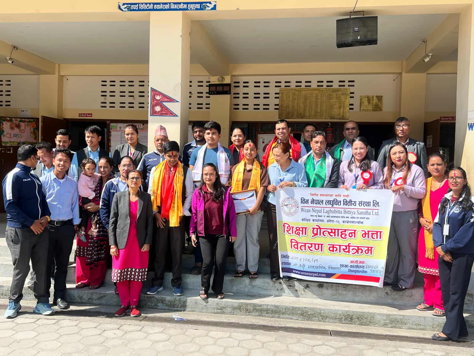 मेलम्ची । विन नेपाल लघुवित्त वित्तीय संस्था लि मेलम्ची र ग्याल्थुम शाखाले शिक्षा प्रोत्साहन कार्यक्रम अनुसार दुवै शाखा अन्तर्गतका बचतकर्ता सदस्य परिवार मध्ये २०८१ को एसइइ परीक्षामा उत्कृष्ट विद्यार्थीहरुका लागि प्रोत्साहन भत्ता वितरण कार्यक्रम बुधबार तेर्से मा वि तालामाराङमा सम्पन्न गरेको छ । ग्याल्थुम शाखा अन्तर्गत यलिजा खड्का र मेलम्ची शाखा अन्तर्गत सुदिष देउजालाई उक्त प्रोत्साहन वितरण गरिएको हो । दुवैजना तेर्से माध्यमिक विद्यालयबाट एस इइ मा सहभागी भइ उत्कृष्ट भएका हुन् ।