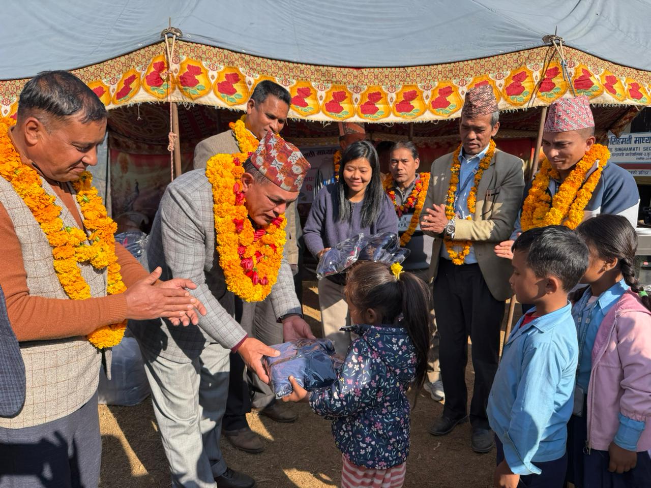 कार्यक्रममा बोल्दै विशिष्ठ अतिथी मोहन बहादुर गिरीले आफुले गरेको सहयोगमध्ये केहीले राम्रो गरेको र केहीले भने सही रुपमा प्रयोग नगरेकोमा गुनासो गर्नुभयो । पालिकामा रहेर अध्ययनका लागी आर्थीक अभाव भएका सबैको लागी सहयोग गर्न आफु हरदम तयार रहेको गिरीले बताउनुभयो । आफु रीत्तिएर भएपनि बालबालिकामा लगान गरीरहेको गिरीको भनाई थियो । यो सहयोगका लागी आफु हरदम तयार रहेको गिरीले बताउनुभयो । विद्यार्थीहरूलाई न्यानो कपडा वितरणसँगै तातो–चिसो पानी खान सहज होस् भनेर डिस्पेन्सर समेत प्रदान गरिएको थियो । गिरीले उपलब्ध सामग्रीहरूको संरक्षण र सदुपयोग गर्न विद्यालय र विद्यार्थीहरूलाई आग्रह गर्नुभयो ।