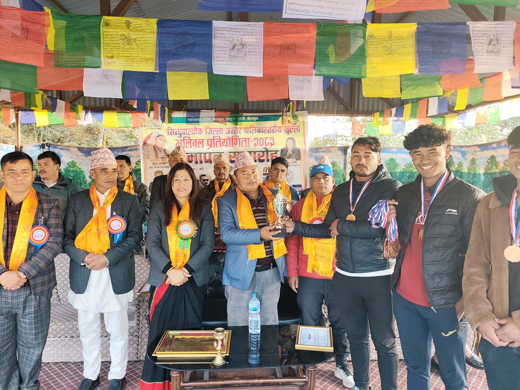 सिन्धुपाल्चोक जिल्ला अन्तरपालिका स्तरिय खुल्ला भलिबल प्रतियोगिताको उपाधी जुगल ‘बी’ लाई