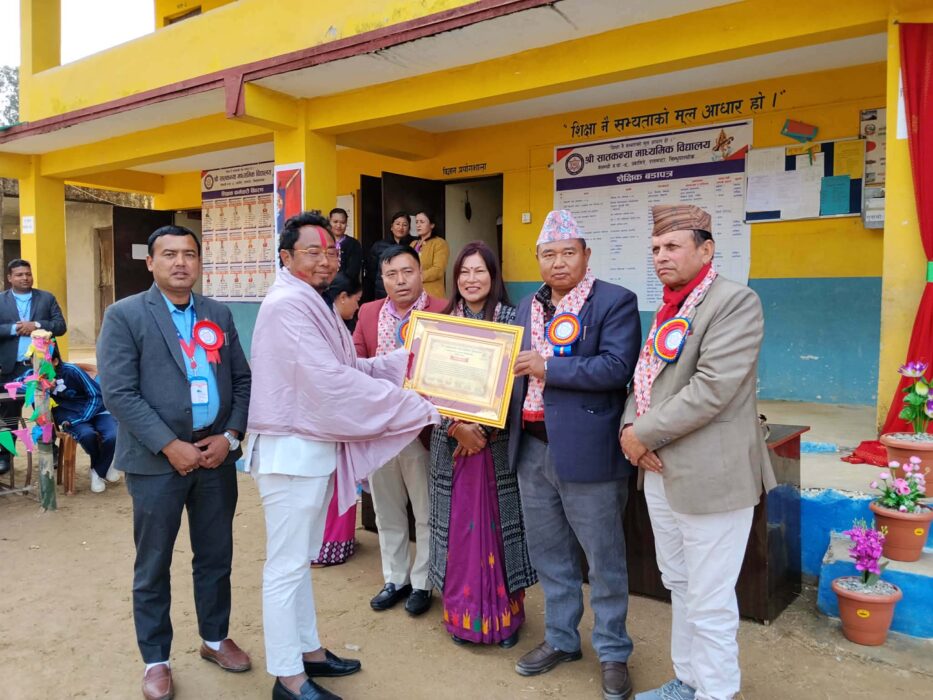 प्रधानाध्यापक जनक अधिकारीले प्रगति प्रतिवेदन तथा व्यवस्थापन समितिका अध्यक्ष सुनबहादुर घलेकाे सभापतित्वमा सम्पन्न कार्यक्रममा नेपाल आइडल गंगा साेनाम र युवा व्यवसायी अनिलकुमार तामाङलाई सम्मान गरिएकाे थियाे ।