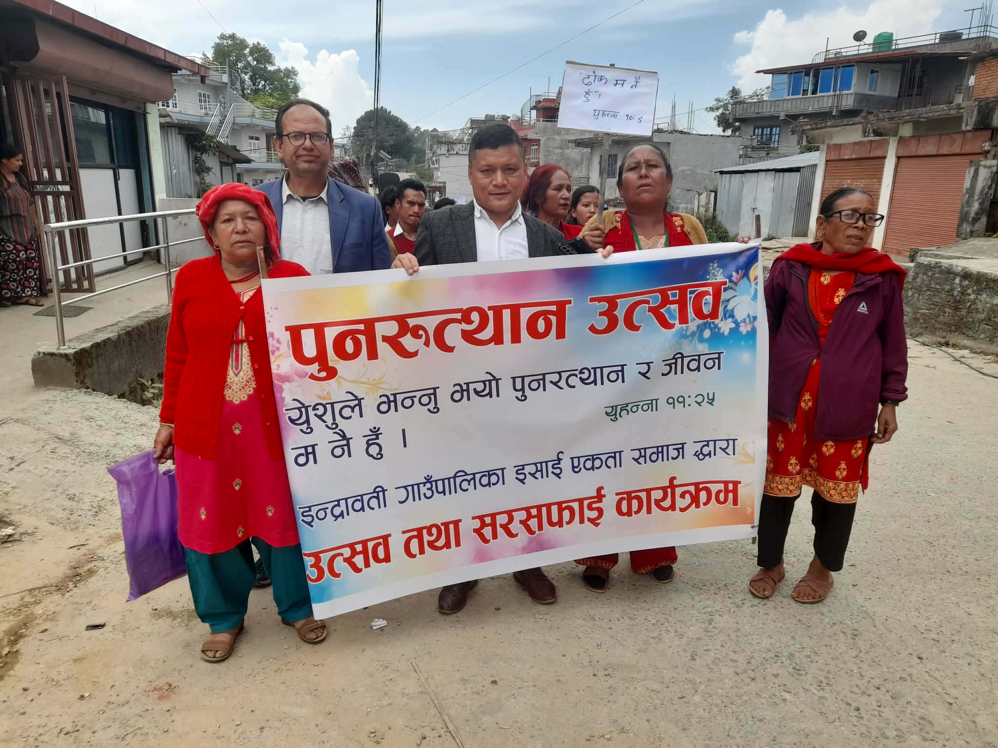 नवलपुर । Easter (जेसस क्राइस्टको पुनरुत्थान दिवस) को अवसर पारेर इन्द्रावती गाउँपालिका इसाई एकता समाजले आज नवलपुर बजार क्षेत्रमा सरसफाइ कार्यक्रम तथा प्रभातफेरी आयोजना गरेको छ। “पुनरुत्थान उत्सव” लेखिएको ब्यानरसहित स्थानीय इसाई धर्मावलम्बीहरू नवलपुर बजार क्षेत्रमा भेला भई सरसफाइ अभियान सञ्चालन गर्नुका साथै प्रभातफेरीमार्फत पुनरुत्थानको सन्देश फैलाएका थिए।