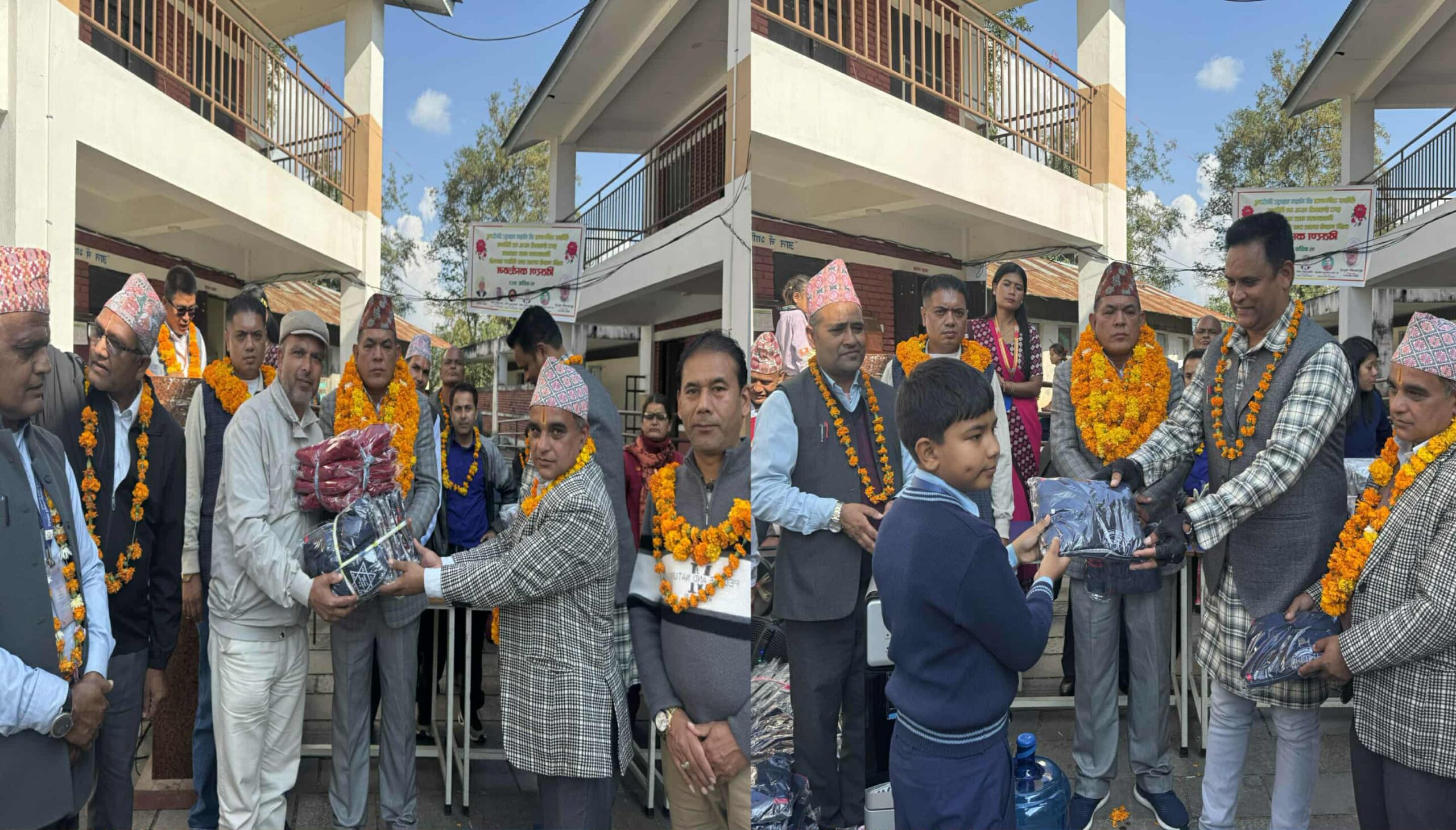 मोहनबहादुर गिरीद्वारा आज एकैदिन तीन बिद्यालयमा न्यानो कपडा तथा शैक्षिक सामाग्री बितरण