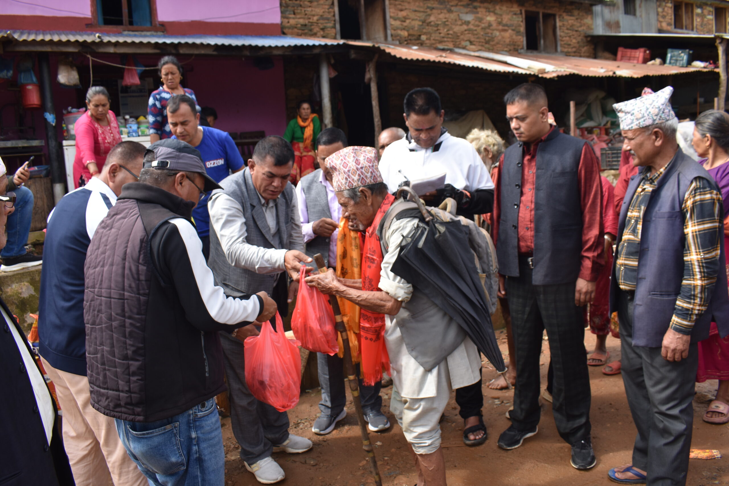 समाजसेवी मोहन गिरिद्वारा कुञ्चोकका ४१ विपन्न परिवारलाई  खाद्यान्न वितरण